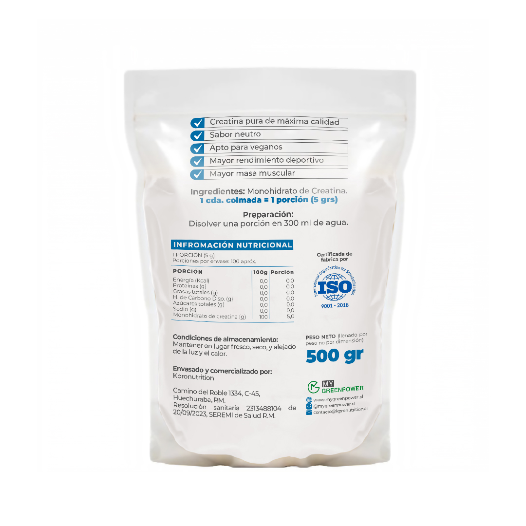 Descripción: La creatina monohidrato 200 Mesh es una forma específica de creatina que es excelente como suplemento dietético. Es estable, efectivo, seguro y el cuerpo lo absorbe con facilidad. La ingesta regular de creatina monohidrato ayuda a reponer los depósitos de creatina del cuerpo. Ideal para mejorar tu rendimiento deportivo, facilita tu recuperación, aumenta tu masa muscular y potencia tu desempeño en el deporte que realices a diario.